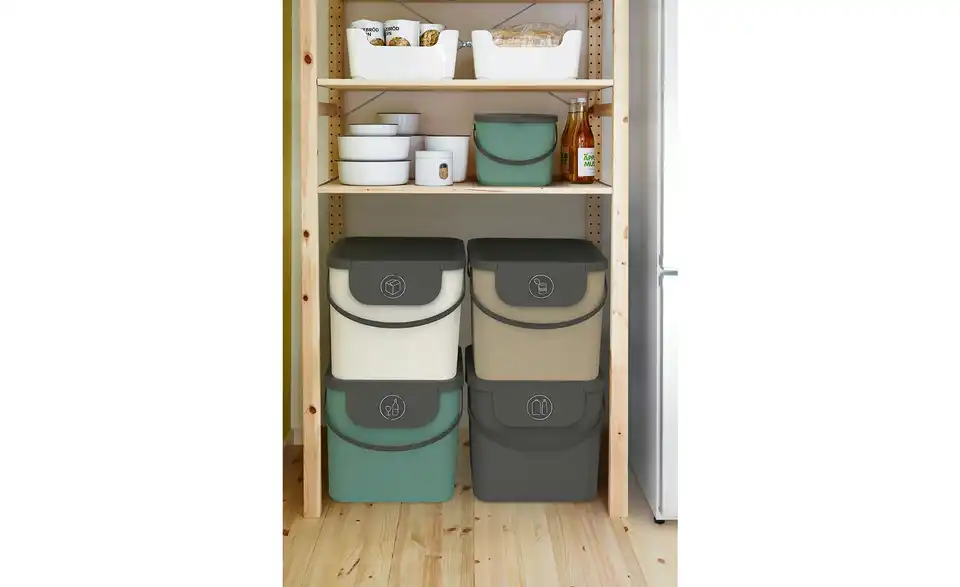Das Müllsystem mit Deckel bietet Ihnen die Möglichkeit, den Abfall im Haushalt ganz einfach zu trennen. Die verschiedenen Eimer aus Kunststoff lassen sich problemlos aufeinander stapeln, sodass sie auch in Räumen mit wenig Platz perfekt eingesetzt werden können. Und bei Nichtbenutzung stapeln Sie die verschiedenen Eimer einfach ineinander. Durch die Griffe können Sie die Abfalleimer auch bequem transportieren. Beim Recycling Müllsystem ALBULA lässt sich auf einen Blick erkennen, welche Abfallprodukte in welchen Eimer gehören. Dafür wird an der Vorderseite des Deckels ein Aufkleber angebracht, der anzeigt, ob PET-Flaschen, Glasflaschen oder Papier in den Abfalleimer gehören.Lieferung & Versand