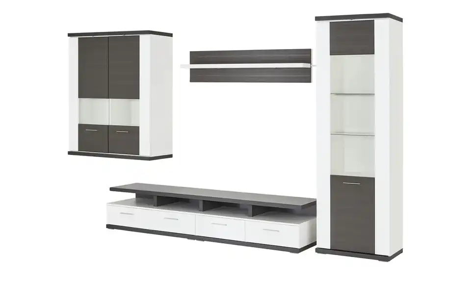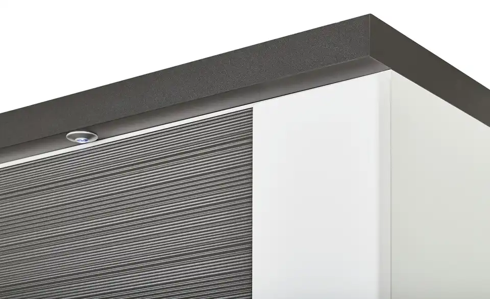 Die Wohnwand Titan von uno hat ein modernes Design in Weiß und Graphitoptik. Die geriffelten Fronten setzen schöne Akzente. Titan besteht aus vier Elementen, die vielseitigen Stauraum bieten. Eine integrierte Beleuchtung sorgt dafür, dass die Wohnwand gut ausgeleuchtet wird.Lieferung & Versand
