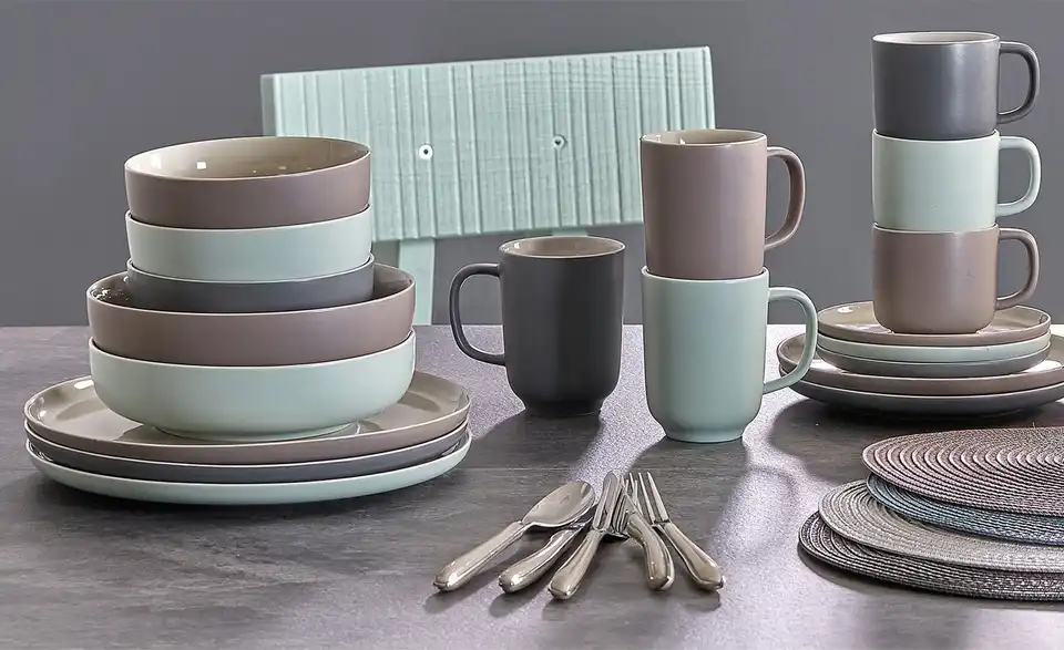 - Lieferumfang / mitgeliefertes Zubehör4 Kaffeebecher (320 ml)4 Müslischalen (14 cm Ø, 5 cm hoch)4 Teller Flach (26 cm Ø)4 Schalen (21 cm Ø, 5 cm hoch)