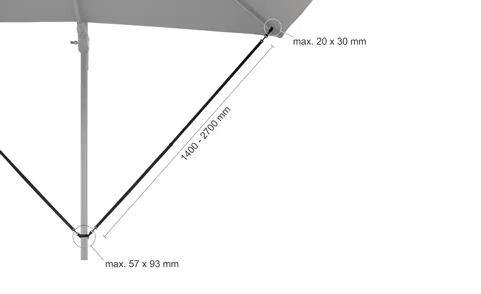 - Mehr zu Ausstattung / Funktionfür einen maximalen Mastumfang von 260 mmfür Ampelschirme der Serie Rhodos und Rhodos Twist