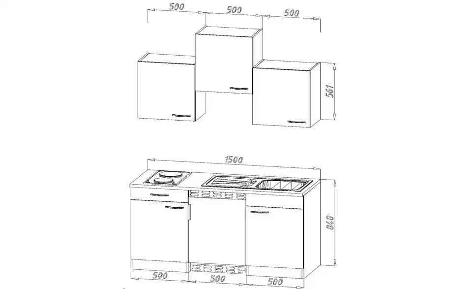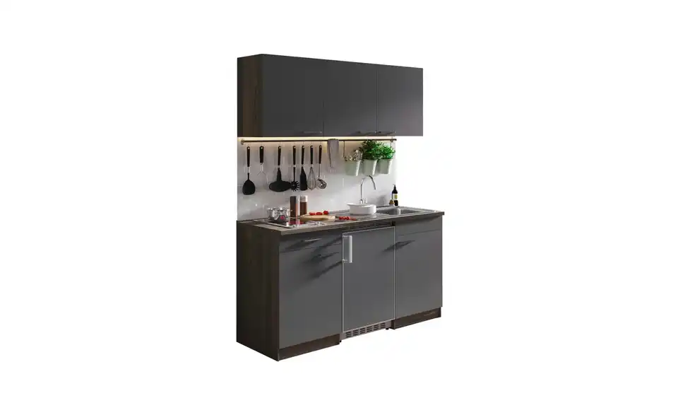 - Lieferumfang / mitgeliefertes ZubehörKüche inkl. Elektrogeräte (Unterbaukühlschrank, Glaskeramikkochfeld)