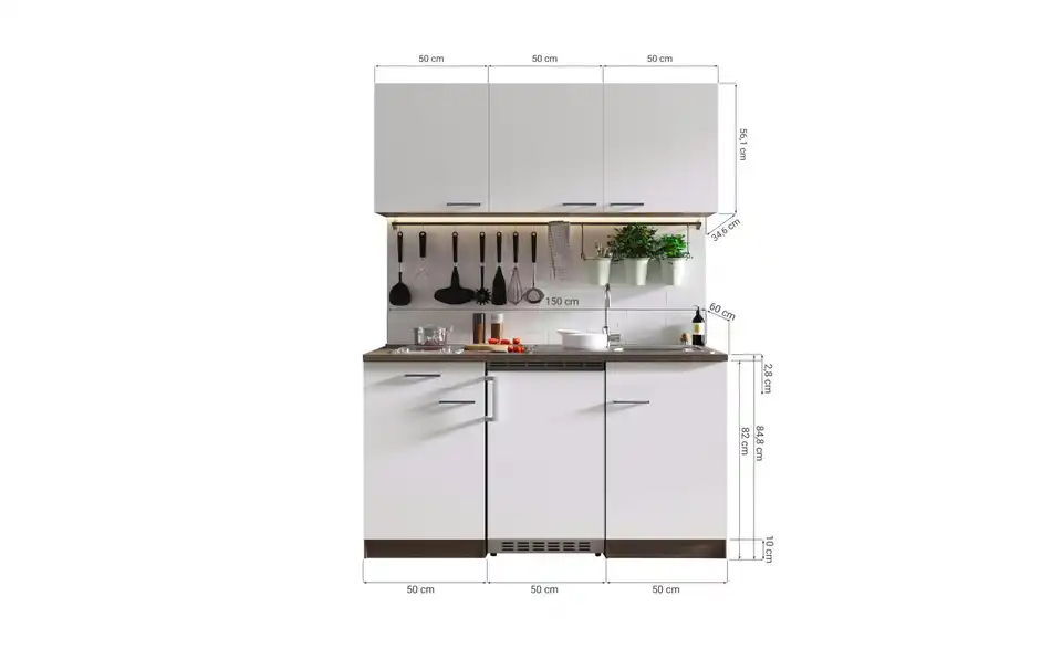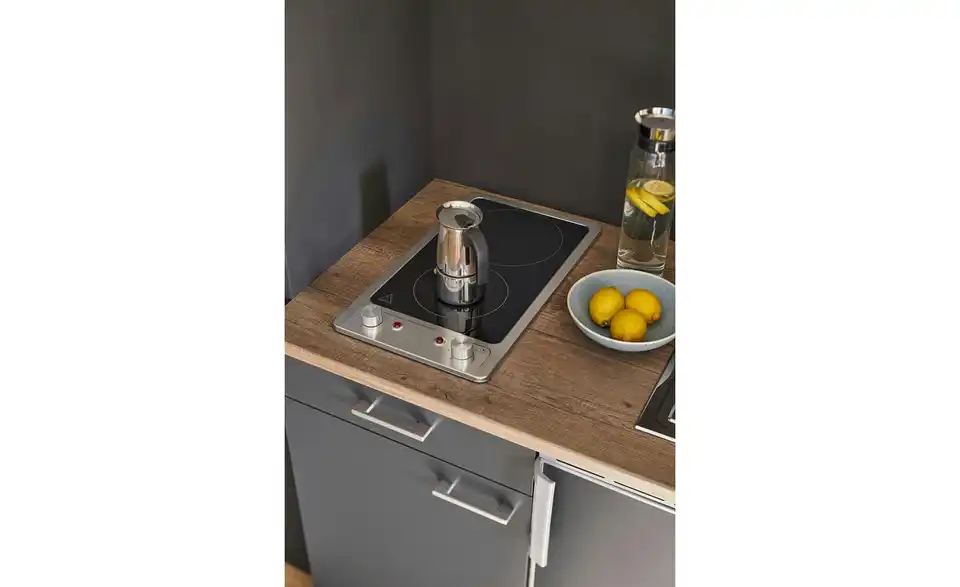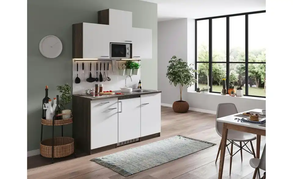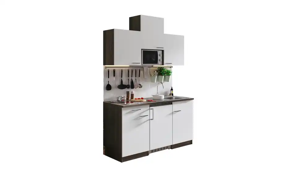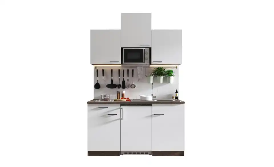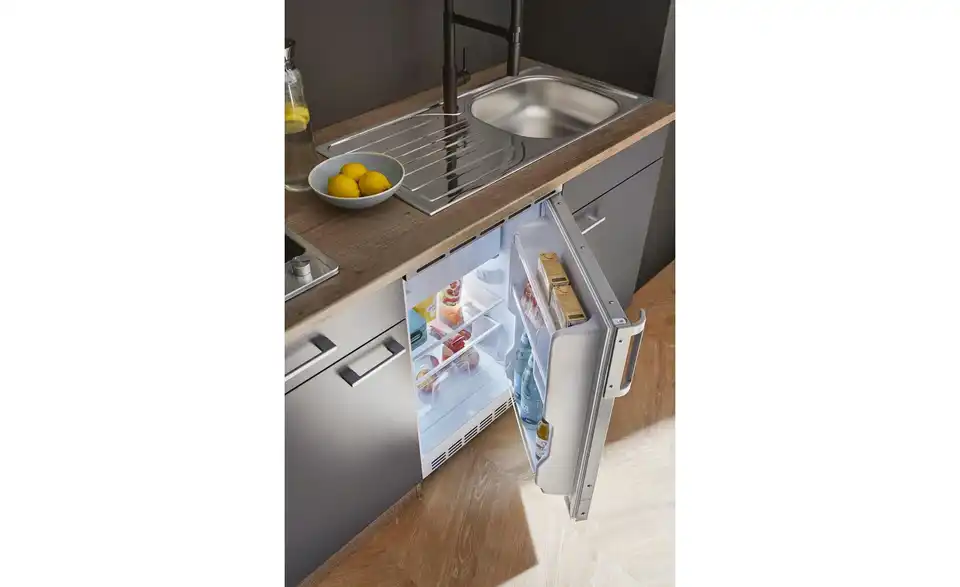 - Lieferumfang / mitgeliefertes ZubehörKüche inkl. Elektrogeräte (Unterbaukühlschrank, Glaskeramikkochfeld, Mikrowelle)
