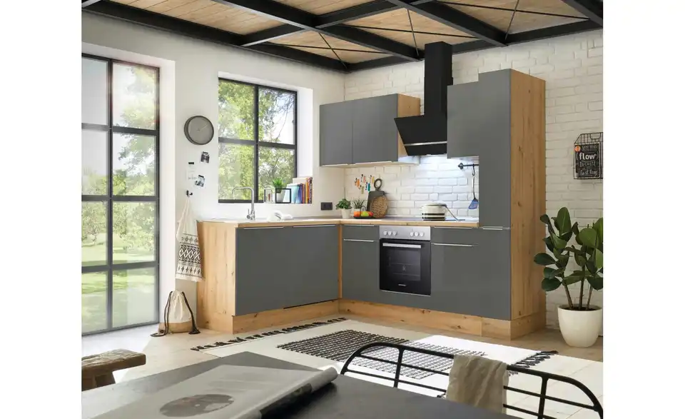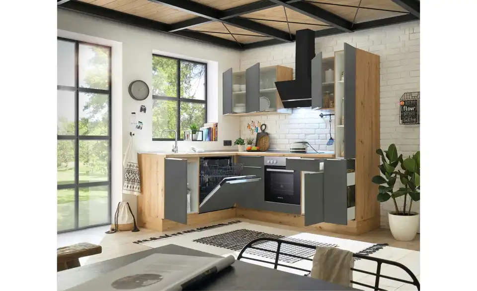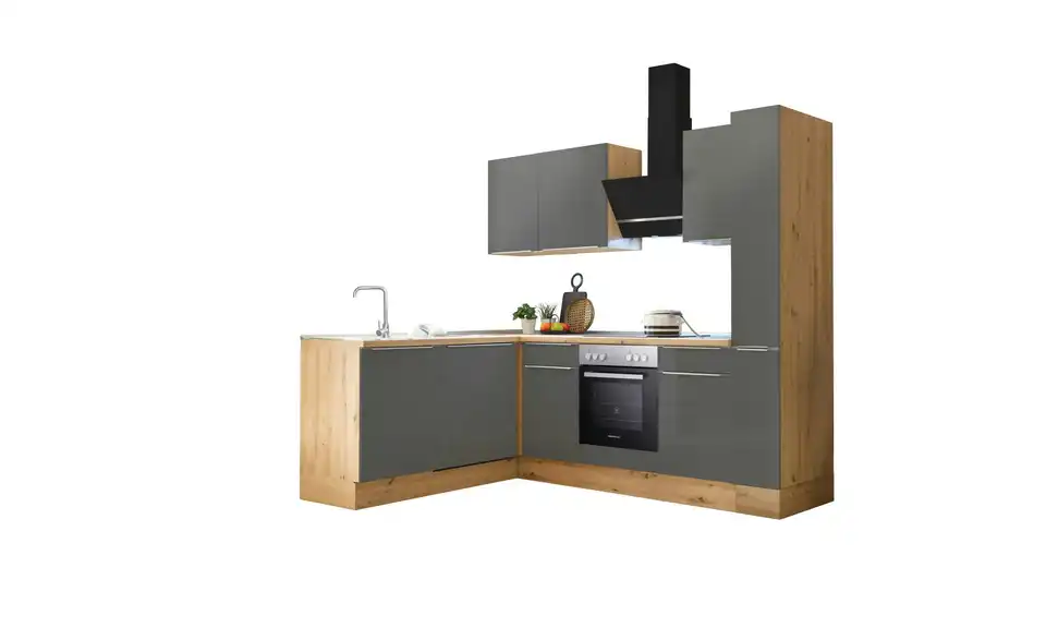 - Lieferumfang / mitgeliefertes ZubehörKüche inkl. Elektrogeräte (Einbau Herdset, Schräghaube, Einbaugeschirrspüler)