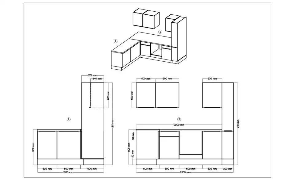 - Mehr zu Ausstattung / FunktionHöhenverstellbare Füße, Auszüge und Scharniere mit Soft-Close Funktion, Arbeitshöhe 91,5 cm