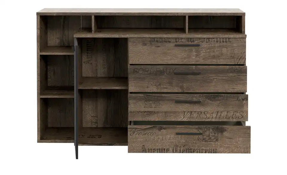 - Stauraum in 4 Schübe, 5 Fächer & hinter 1 Tür