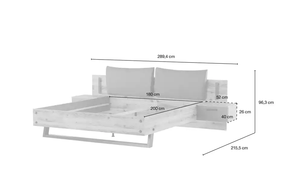 - Mehr zu MaßenNachtkommode BHT je ca. 52 x 26 x 40 cmEinlasstiefe Lattenrost 3-fach verstellbar 14,8 cm / 12,4 cm / 10 cm