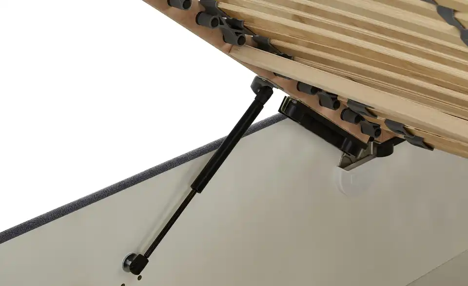 - Mehr zu Ausstattung / FunktionMaterial Lattenrahmen Leisten aus Birke; Längskante aus Schichtholz, restlichen Teile: Massivholz (Buche)Bettkasten vom Fußteil zugänglich (Gasdruckfeder)