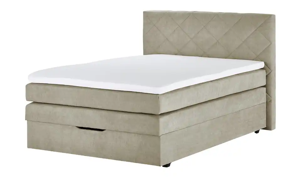 Das Boxspringbett Atika besticht durch sein weich gepolstertes Kopfteil in Karo-Steppung. Die zwei Matratzen mit flächenelastischen Bonnellfederkernen sorgen für höchsten Komfort. Ein mitgelieferter Schaumstofftopper rundet das Schlaf-Erlebnis gekonnt ab. Das Boxspringbett besitzt mit seinen 67 Zentimetern Bettseitenhöhe eine angenehme Komforthöhe. So kommen Sie am Morgen auch wieder problemlos aus dem Bett. Das moderne Bett ist nicht nur komfortabel, sondern auch funktional. Unterhalb der Liegefläche finden Sie einen geräumigen Bettkasten, der sich ganz einfach am Fußende des Bettes aufklappen lässt.Lieferung & Versand