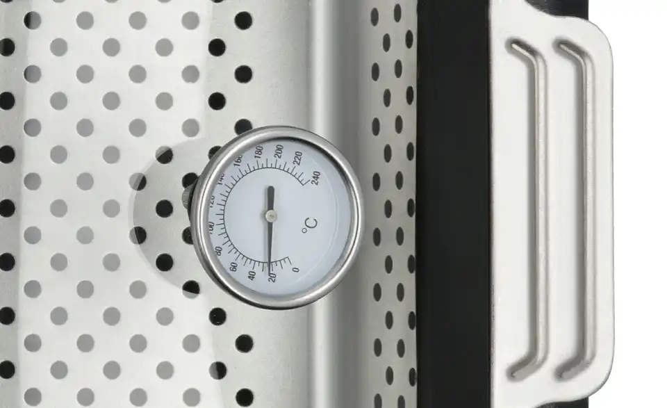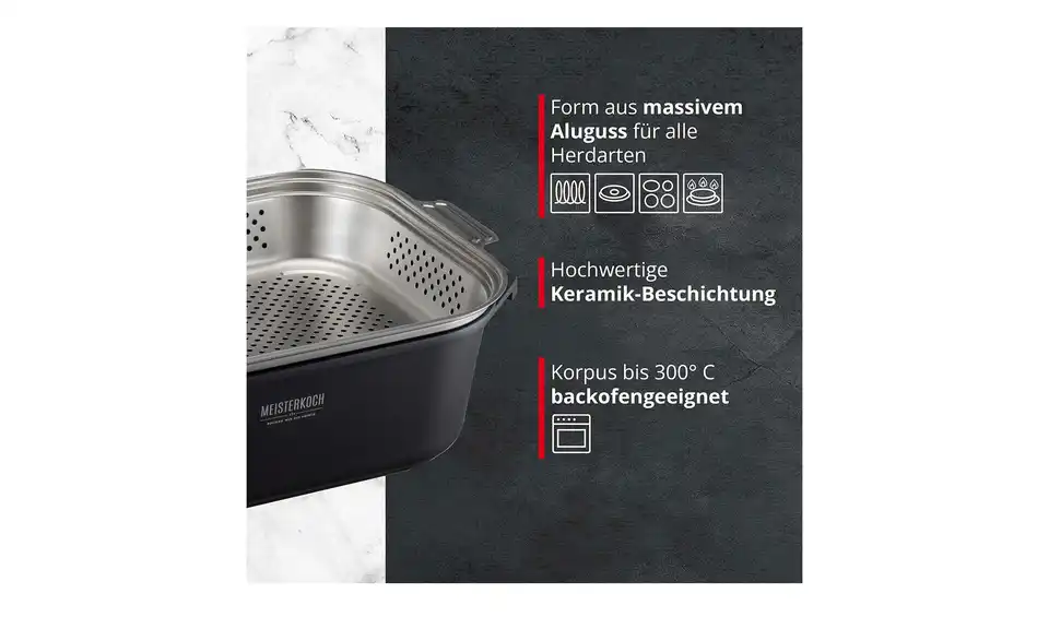 - Mehr zu Ausstattung / FunktionBackofen geeignet bis 250°Caußer der Glasdeckel, dieser ist nur bis 180°C im Backofen geeignetBratenthermometer mit Anzeige bis 240°C