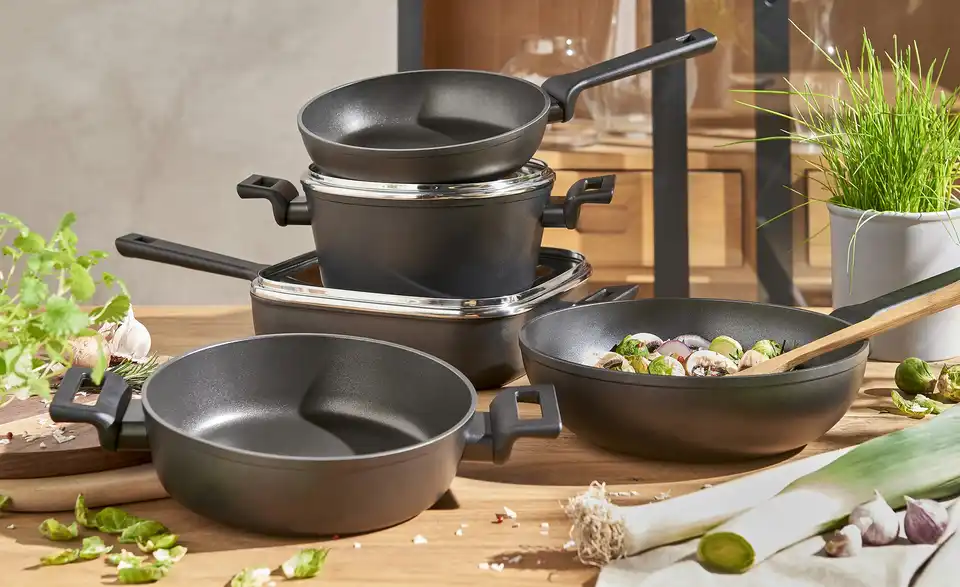 Nachhaltig kochen? Kein Problem mit unser Kochgeschirrserie Green Line. Der Körper wurde zu 100% aus recycelten Aluminium hergestellt. Als Antihaftbeschichtung dient die hochwertige ILAG MAXIMIZING GREEN©. natürlich frei von schädlichen Chemikalien. Die ergonomischen Designgriffe wurden aus nat ürlichen Rohstoffen hergestellt. Das Kochgeschirr ist für alle Herdarten geeignet, somit kann jeder umweltbewusster kochen. Zu guter Letzt besteht die Verpackung aus recyceltem Karton.Lieferung & Versand