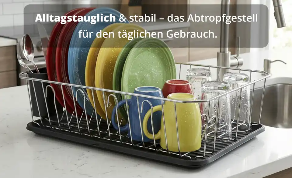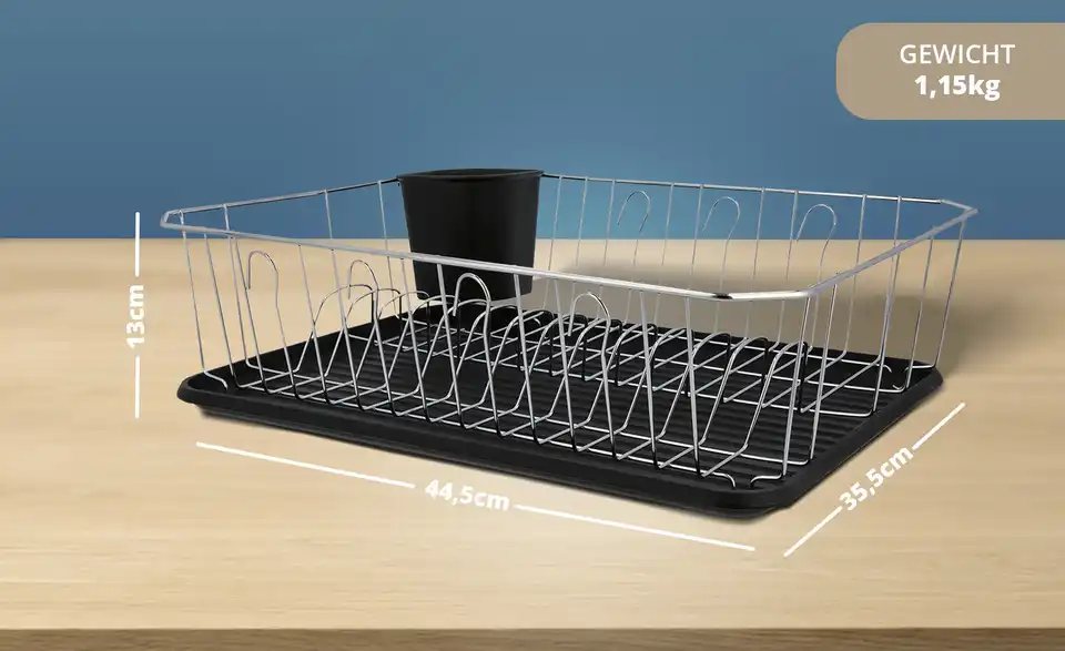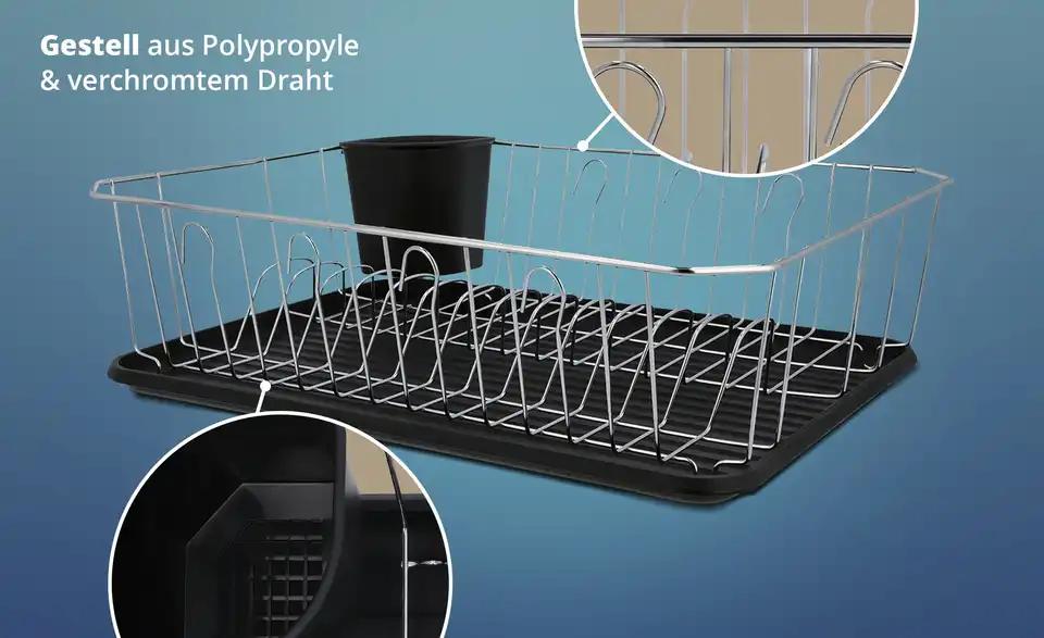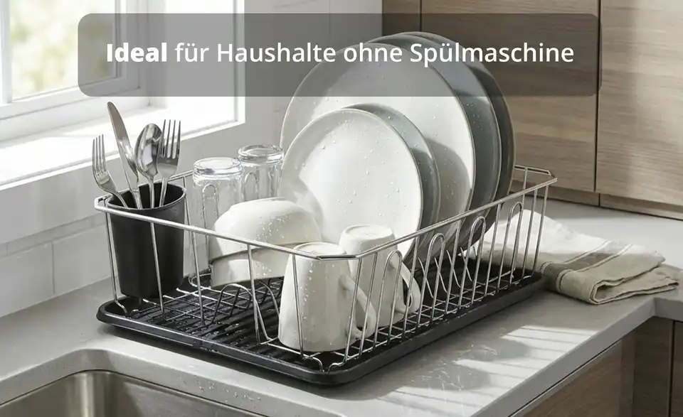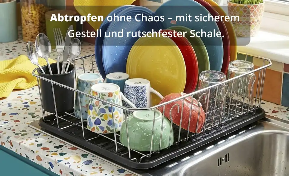 - Abtropfschale und Geschirrständer mit Besteckhalter