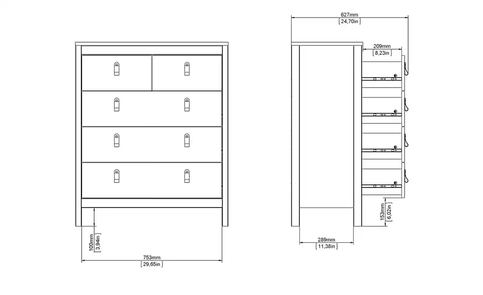 - Anzahl Schubkästen5 Stück