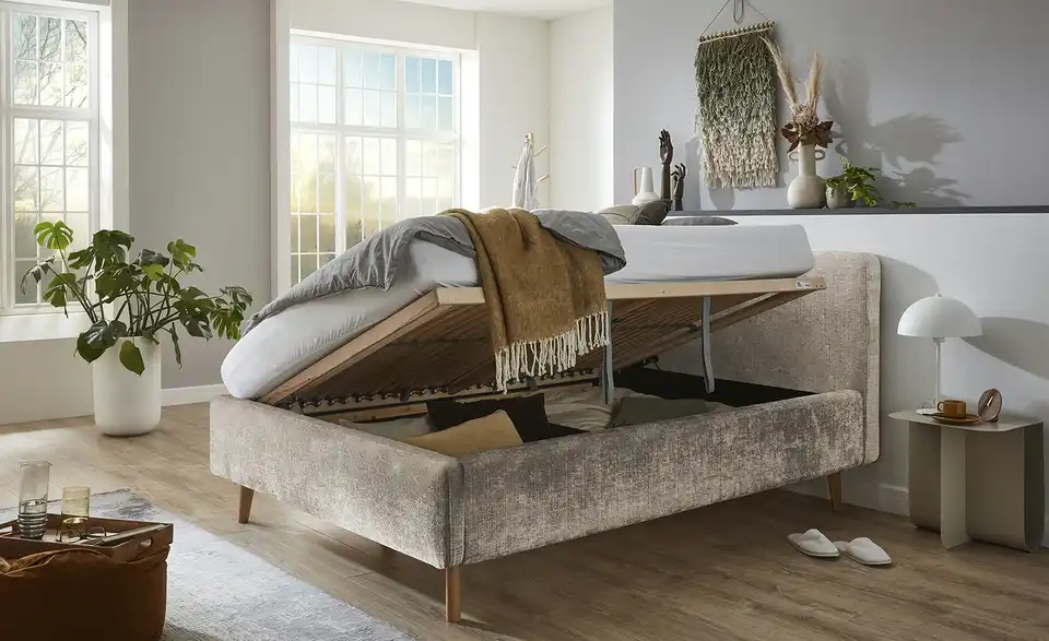 - Ausstattung / FunktionBettkastenöffnung links oder rechts montierbarinnen liegender Bettkasten