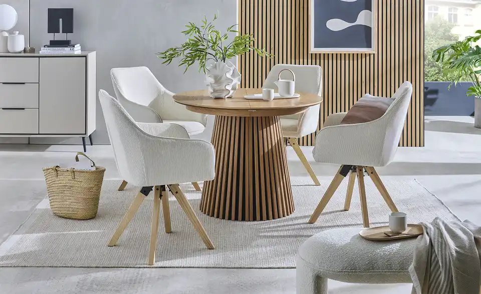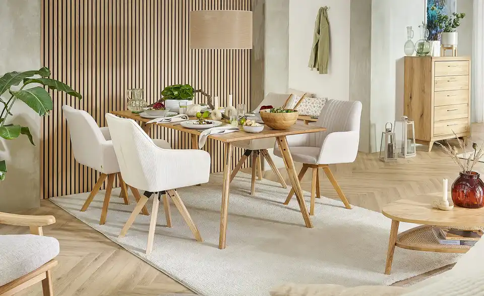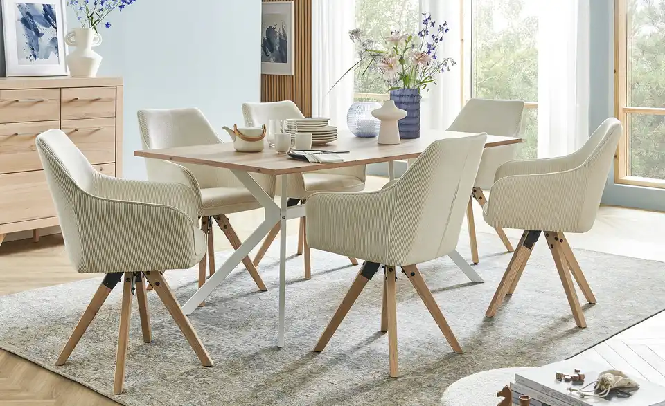 Holen Sie sich mit diesem Polsterstuhl Gemütlichkeit nach Hause. Der Stuhl hat bequeme Armstützen, welche die individuelle Wohlfühlposition sichern. Er weiß mit einer nützlichen Drehfunktion zu überzeugen. Die Polsterung aus Schaumstoff garantiert besonders hohen Sitzkomfort. Das Gestell aus Massivholz bildet das Fundament der Sitzmöglichkeit. Der Stuhl nimmt insgesamt 60 x 88,5 x 66,5 cm ein. Wo auch immer Sie dieses Modell hinstellen, wird Ihr neuer Lieblingsplatz sein.Lieferung & Versand
