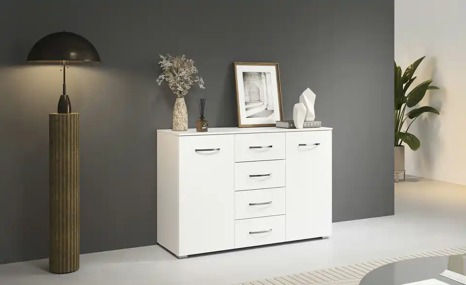 - SicherheitshinweiseBefolgen Sie die Sicherheitshinweise und Montageanleitung sorgfältig. Für Personen- und/oder Sachschäden wird bei Missachtung keine Haftung oder Gewährleistung übernommen.Achten Sie während der gesamten Montage, insbesondere beim Heben schwerer oder langer Teile darauf, dass Sie sich oder andere nicht verletzen. Bewegen Sie schwere und unhandliche Möbelstücke nicht allein.Stellen Sie sicher, dass Sie mit den Werkzeugen für den Aufbau vertraut sind und achten Sie auf die richtige Handhabung. Sorgen Sie für eine gefahrenfreie Arbeitsumgebung. Der Auf-/ Abbau oder wenn möglich das Auf-/ Zuklappen des Produktes darf nur von Erwachsenen durchgeführt werden."Das gesamte Befestigungsmaterial für die Montage muss stets ordnungsgemäß festgezogen werden.Achten Sie darauf, dass keine Beschläge locker sind. Ist für die Montage eine Wandbefestigung oder Kippsicherung vorgesehen, so nutzen Sie diese nach zufriedenstellender Prüfung der Beschaffenheit der Wand. Konsultieren Sie bei Unklarheiten einen Fachmann. Es dürfen im Befestigungsbereich keine Elektro-Installationszonen und keine Ver- oder Entsorgungsleitungen vorhanden sein. "Legen Sie bitte die Möbelteile zur Montage auf einen weichen Untergrund - so vermeiden Sie Kratzer! Stellen Sie sicher, dass das Möbelstück auf einer ebenen und stabilen Fläche steht.Alle hohen und / oder schmalen Möbelstücke müssen an der Wand befestigt werden! NICHT an der Wand befestigte Elemente können kippen. Beachten Sie dies auch während der Montage."Beim Einlegen oder Herausnehmen der Einlegeböden bitte nicht verkanten. Dies kann zuBeschädigungen der Möbelelemente führen. Scharfkantige bzw. spitze Gegenstände, sowie hartes Aufsetzenkann die Einlegeboden beschädigen und ggfs. zum Glasbruch an Glaseinlegeböden führen."Die gebrauchsübliche Nutzung des Produktes darf erst nach vollständiger Montage erfolgen. Achten Sie auf sachgerechte Ausrichtung des Möbelstücks.Achtung! Erstickungsgefahr durch Folienverpackung und verschluckbare Kleinteile. Von Kindern fernhalten. Kinder niemals unbeaufsichtigt mit dem Produkt allein lassen.Achtung! Erhebliche Verletzungsgefahr bei Zweckentfremdung des Produktes. Verwenden Sie das Möbelstück nicht als Sitzfläche auf nicht dafür vorgesehenen Oberflächen oder zum Klettern. Nutzen Sie ausgezogene Schubkästen (wenn vorhanden) nicht als Trittleiter.Achten Sie bei der Nutzung auf eine gleichmäßige Gewichtsverteilung. Lagern Sie schwere Gegenstände in den unteren Fächern und leichte Gegenstände oben. Überladen Sie das Möbelstück nicht und beachten Sie die maximalen Belastungsgrenzen.Achten Sie darauf, dass keine Finger oder andere Körperteile eingeklemmt werden. Achten Sie besonders darauf, dass Kinder nicht an Türen oder Schubkästen ziehen.Verbindungen und Schrauben regelmäßig, mindestens jedoch alle drei Monate, auf Festigkeit prüfen. Bitte verwenden Sie bei Schäden oder Zweifeln an der Gebrauchsfähigkeit das Produkt nicht mehr.Es dürfen keinerlei Veränderungen, An- oder Umbauten an dem Produkt vorgenommen werden. Durch unsachgemäße Reparaturen und bauliche Veränderungen (Demontage von Originalteilen, Anbau von nicht vorgeschriebenen Teilen, usw.) können Gefahren für den Benutzer entstehen.Alle elektrischen Installationen (wenn im Lieferumfang enthalten) sind nach den gültigen Normen bzw. Vorschriften gefertigt. Die zu verwendende Leuchtmittelstärke ist auf der jeweiligen Lampenfassung angegeben. Bei Nichteinhaltung der max. Wattzahl besteht durch Überlastung Brandgefahr. Das Zudecken der Leuchtmittel bzw. Hitzestau ist wegen Brandgefahr zu unterlassen! Die beigelegte Montageanleitung für die Beleuchtung ist einzuhalten! Achten Sie bei der Benutzung des Produkts auf die Vorgaben aus der Bedienungsanleitung.