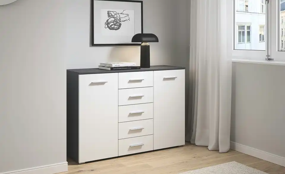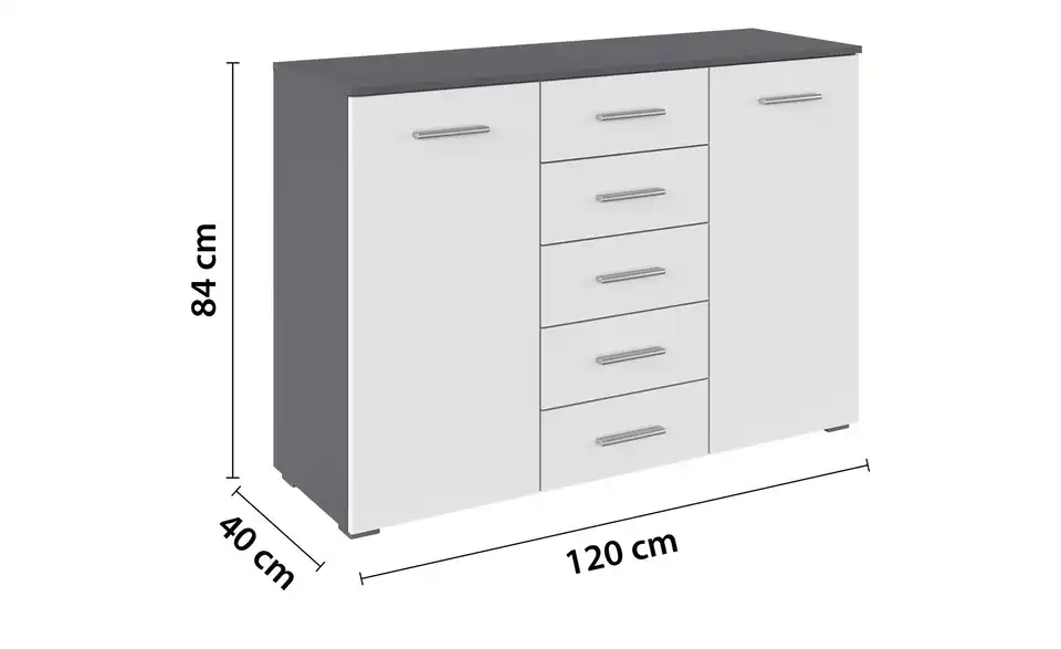 - 5 Schübe und 2 Türen bieten viel Staufläche