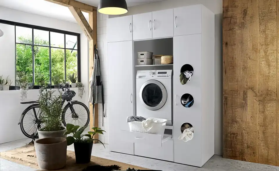 - nicht im Lieferumfang enthaltenohne Waschmaschineohne Aufsätzeohne Dekoohne Waschmaschinenunterschrankohne Wäscheschrankohne Schrägschrankohne Regal