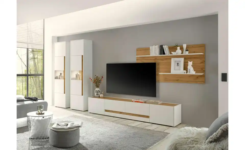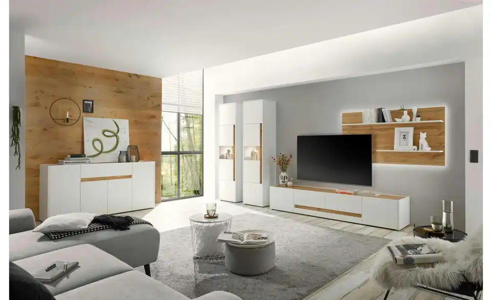 - Lieferumfang / mitgeliefertes Zubehör2x Vitrine B/ H/ T ca. 50/ 197/ 40 cm, Lowboard B/ H/ T ca.: 220/ 40/ 45 cm, Wandboard B/ H/ T ca.: 155/ 80/ 20 cm