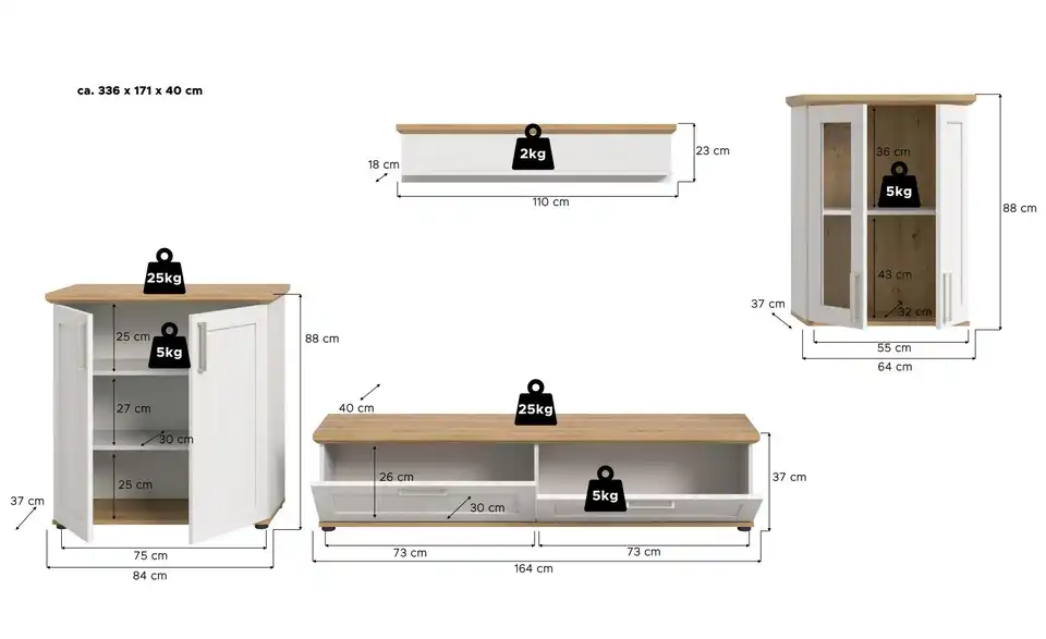 - Gesamtbreite336 cm