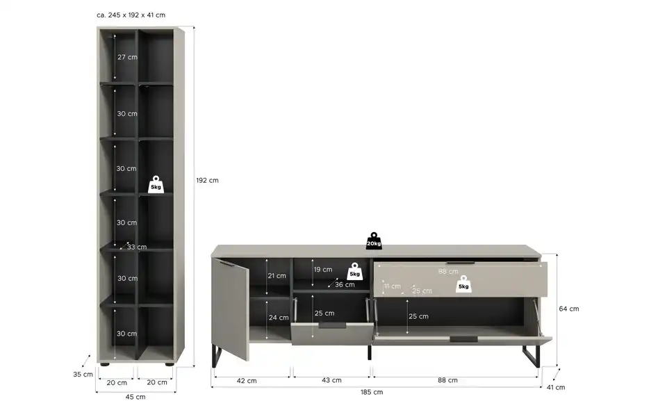 - max. Belastbarkeit je verstellbarem Einlegeboden bis ca.5 kg