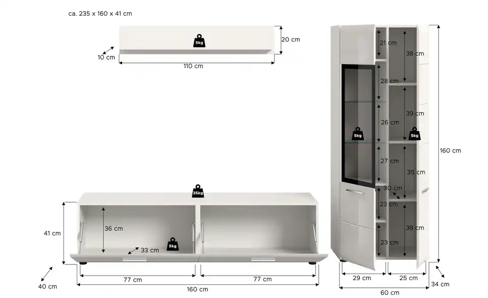 - max. Belastbarkeit je verstellbarem Einlegeboden bis ca.5 kg