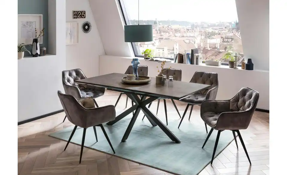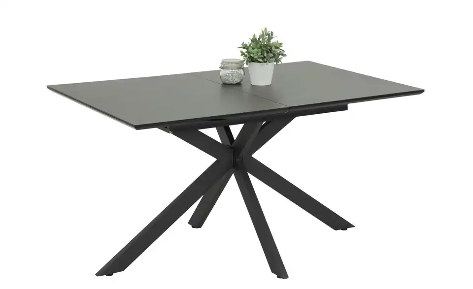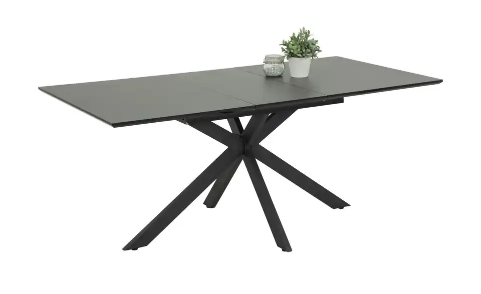 - Mehr zu MaterialDer Tisch hat eine schwarz lackierte Tischplatte mit einer zusätzlich 5mm aufliegenden Glasplatte in Keramikoptik.