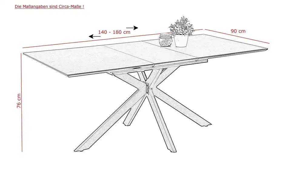 - Maße Tisch (LxB)90x180 cm