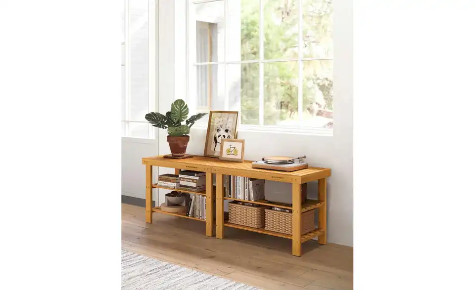 - Bietet eine Sitzmöglichkeit sowie Stauraum