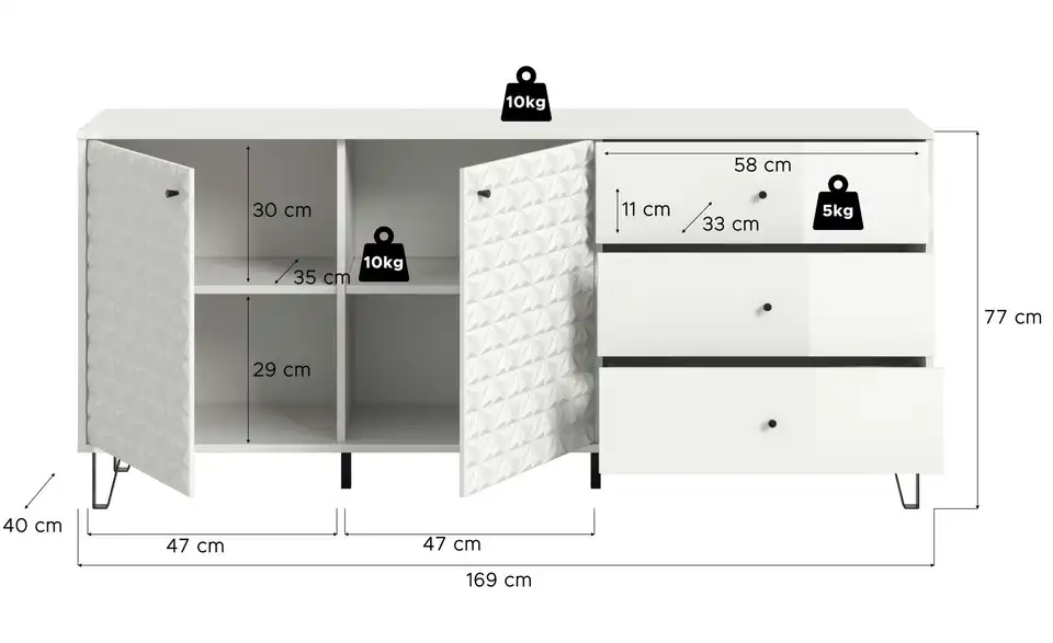 - max. Belastbarkeit je Schubkasten bis ca.5 kg