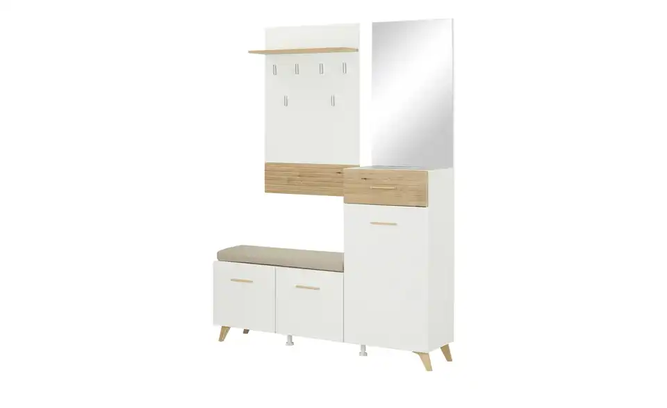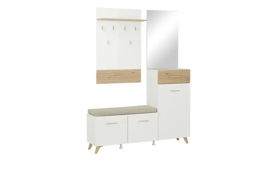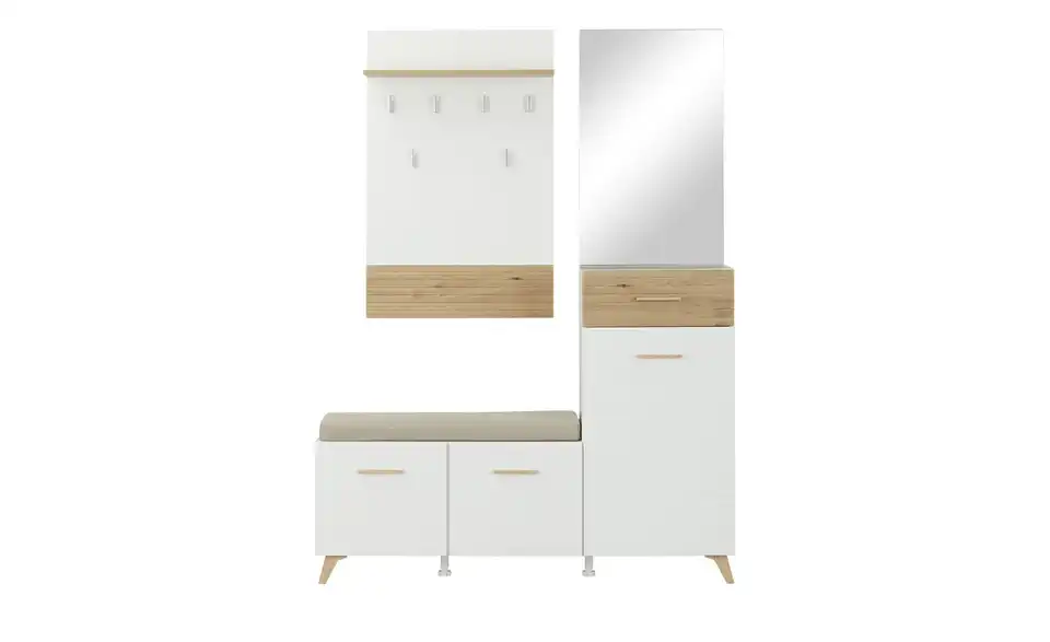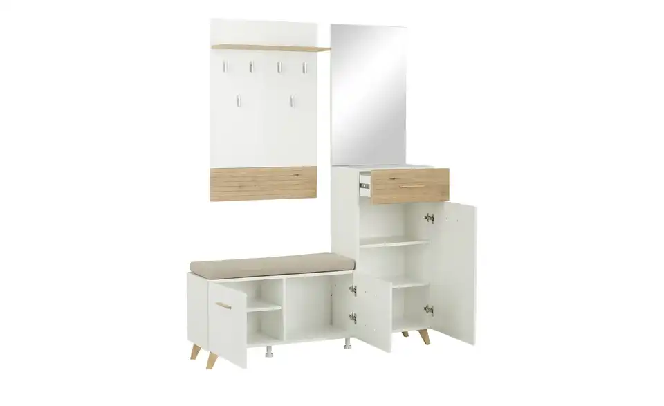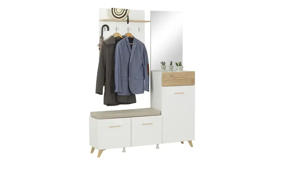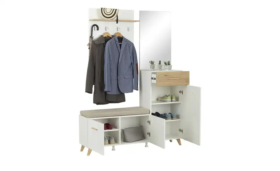 - Lieferumfang / mitgeliefertes ZubehörKommodeBank inklusive SitzkissenSpiegelGarderobenpaneel