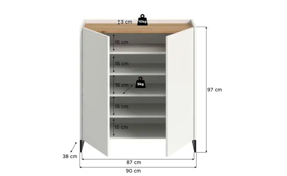 - max. Belastbarkeit je verstellbarem Einlegeboden bis ca.5 kg