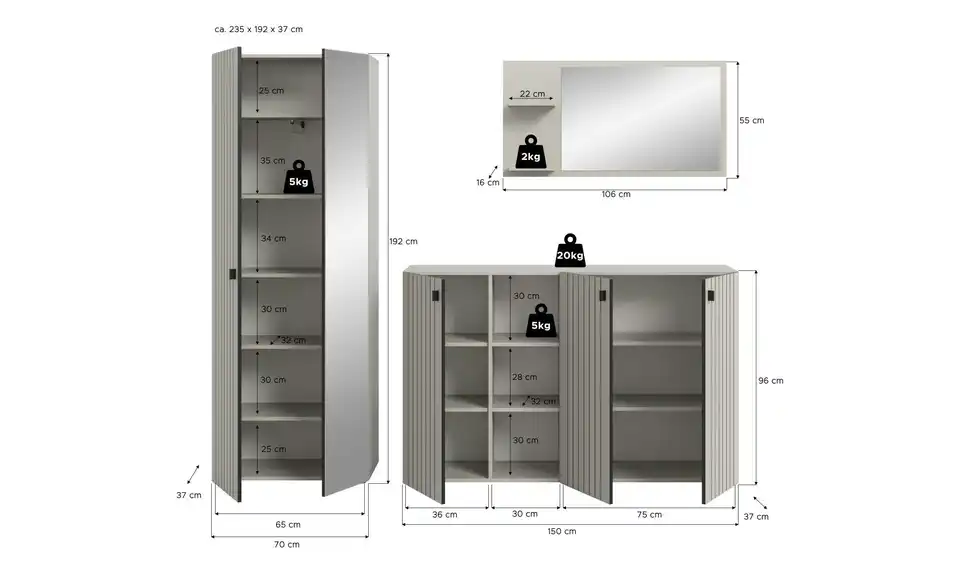 - max. Belastbarkeit je festem Einlegeboden bis ca.5 kg