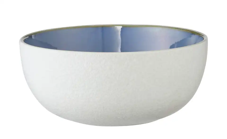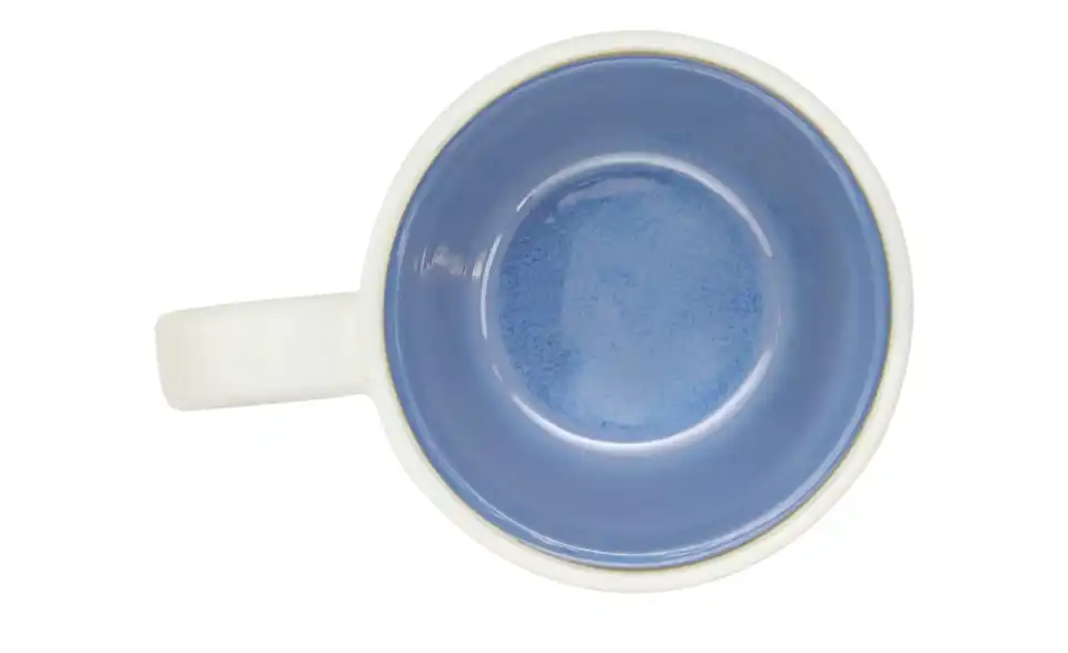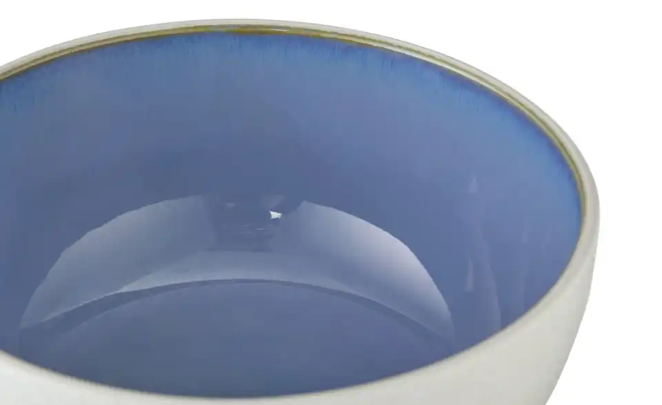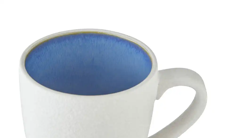 - Außen weiß matt, innen strahlend blau glänzend