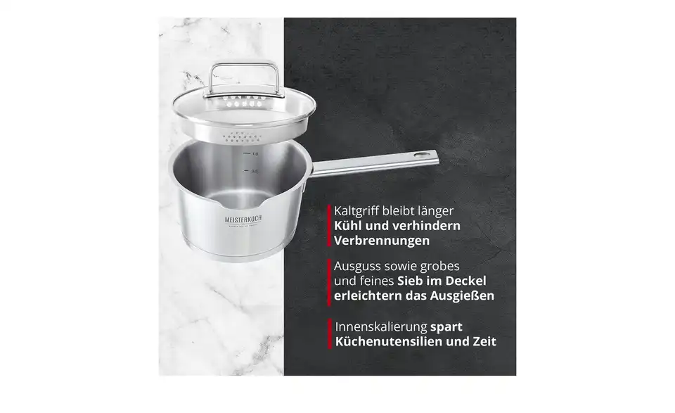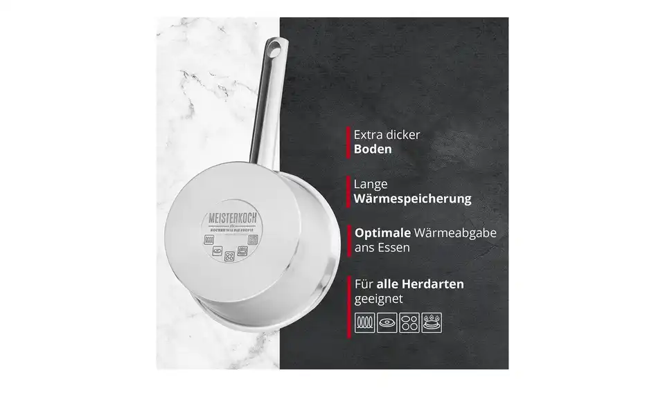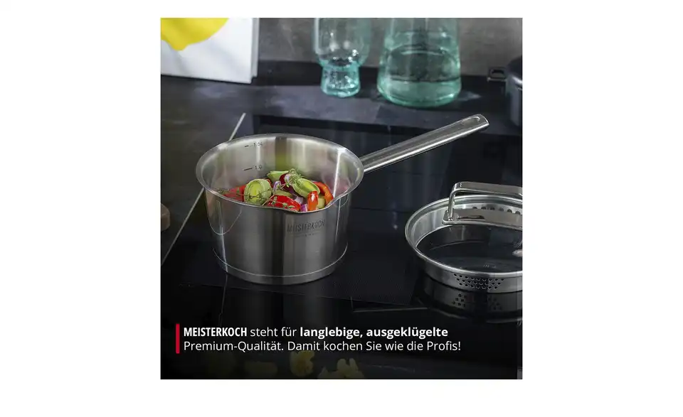 Um auf höchstem Niveau zu kochen, braucht es drei Dinge: ausgewählte Zutaten, viel Liebe und bestes Koch-Equipment. MEISTERKOCH ist Ihr Partner für hochwertige Töpfe, Pfannen und Küchenzubehör in Chefkoch-Qualität, mit dem schon das Zubereiten der Speisen zum Genuss wird. Mit MEISTERKOCH kochen Sie wie die Profis, überzeugen Sie sich selbst!