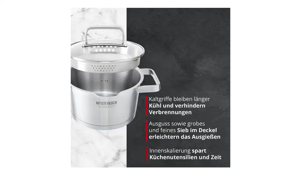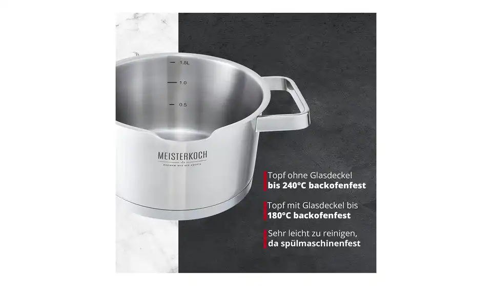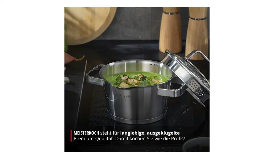 Um auf höchstem Niveau zu kochen, braucht es drei Dinge: ausgewählte Zutaten, viel Liebe und bestes Koch-Equipment. MEISTERKOCH ist Ihr Partner für hochwertige Töpfe, Pfannen und Küchenzubehör in Chefkoch-Qualität, mit dem schon das Zubereiten der Speisen zum Genuss wird. Mit MEISTERKOCH kochen Sie wie die Profis, überzeugen Sie sich selbst!
