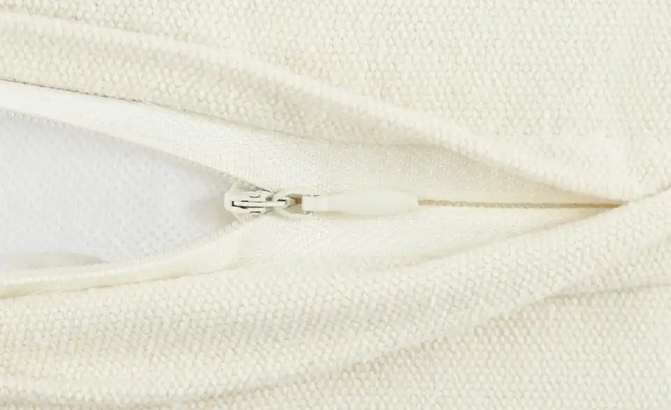 - Materialzusammensetzung TextilBezug Vorderseite: 98,3% Polyester, 1,7% Leinen Rückseite: 100% recycelte BaumwolleFüllung 100% Polyester