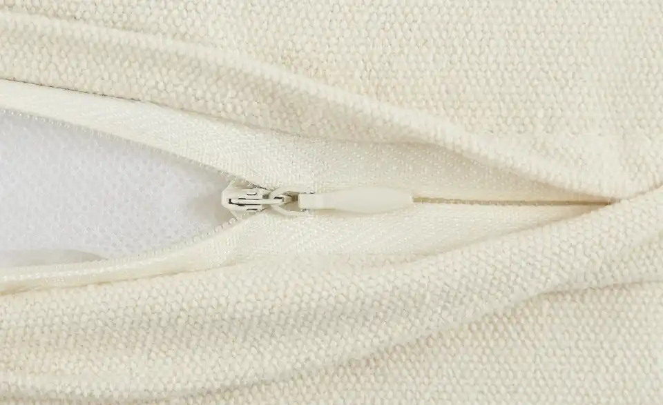 - Materialzusammensetzung TextilBezug Vorderseite: 98,3% Polyester, 1,7% Leinen Rückseite: 100% recycelte BaumwolleFüllung 100% Polyester