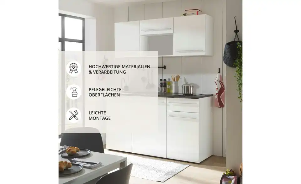 - Mehr zu Ausstattung / FunktionMelaminbeschichtung, Liftfunktion im Hängeschrank, Unterflurauszug, höhenverstellbare Kunststofffüße, Arbeitsplatte ohne Auschnitte - dadurch Schränke zum Teil variabel stellbar, ohne Armatur