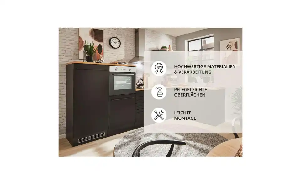 - Mehr zu Ausstattung / FunktionMelaminbeschichtung, Liftfunktion im Hängeschrank, Unterflurauszug, höhenverstellbare Kunststofffüße, Arbeitsplatte ohne Auschnitte - dadurch Schränke zum Teil variabel stellbar, ohne Armatur