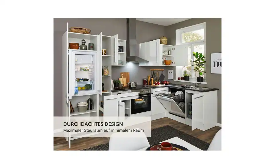 - Bestehend ausUnterschrank, Herdschrank, Tür für Geschirrspülerblende, Spülenunterschrank,Kühlumbauschrank,Vorratsschrank, 3 Hängeschränke, 2 Arbeitsplatten, Eckschrank, Spüle, Dunstabzugshaube, Einbauherdset, Geschirrspüler, Einbaukühlschrank