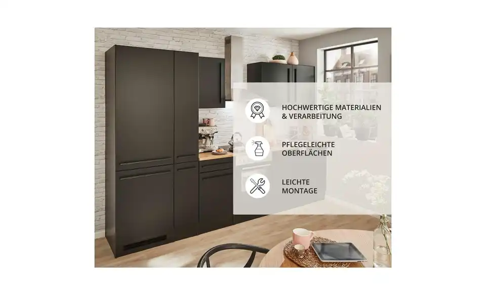 - Mehr zu Ausstattung / FunktionMelaminbeschichtung,Kühlumbauschrank mit Lüftungsgitter, Unterflurauszug, höhenverstellbare Kunststofffüße, Arbeitsplatte ohne Auschnitte - dadurch Schränke zum Teil variabel stellbar, ohne Armatur
