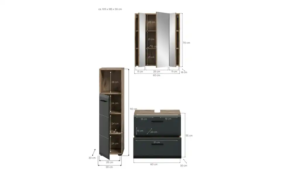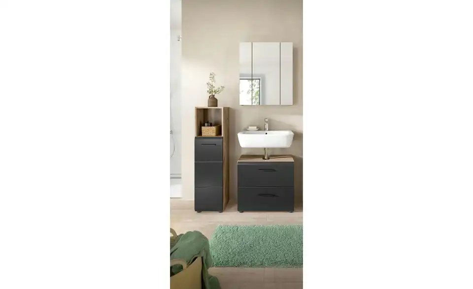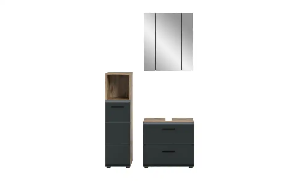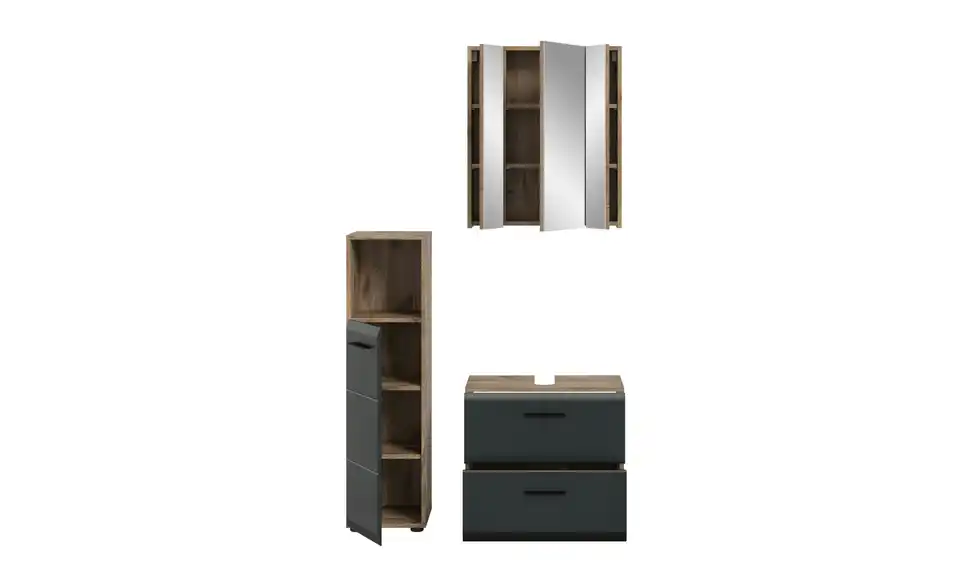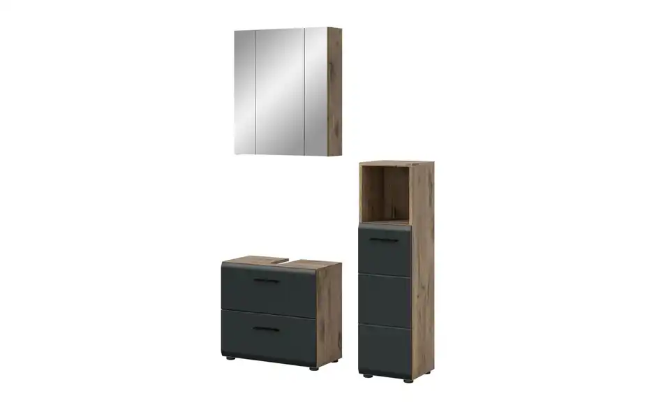 - Bestehend aus1x Standschrank, 1x WBU, 1x Spiegelschrank
