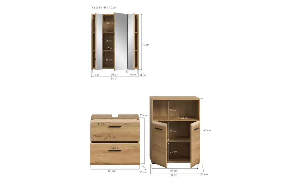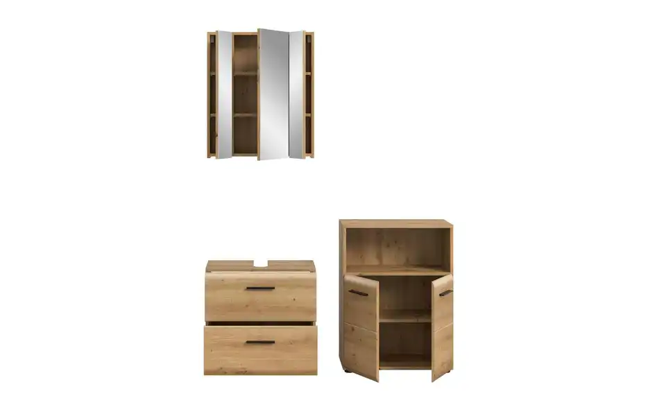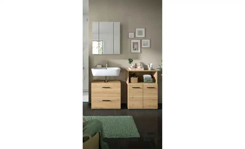 - Bestehend aus1x WBU, 1x Spiegelschrank, 1x Standschrank breit
