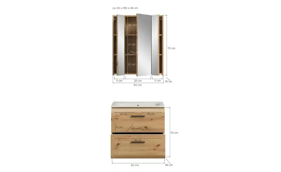 - Bestehend aus1x Waschtisch inkl. Waschbecken, 1x Spiegelschrank