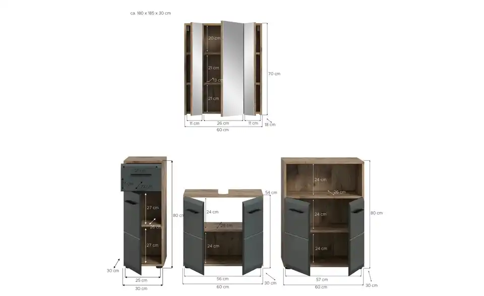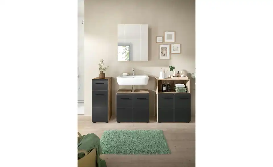 - Bestehend aus1x Standschrank, 1x WBU, 1x Spiegelschrank, 1x Standschrank breit