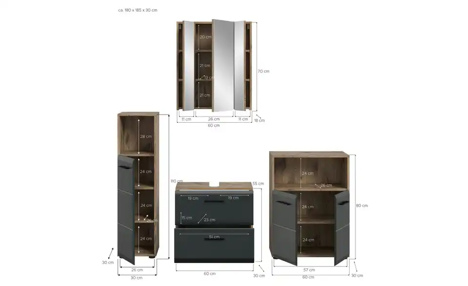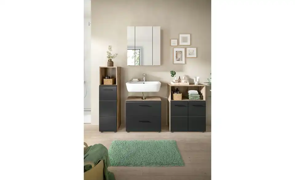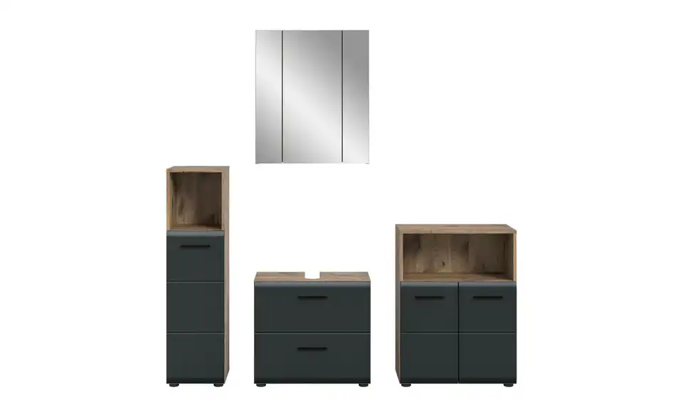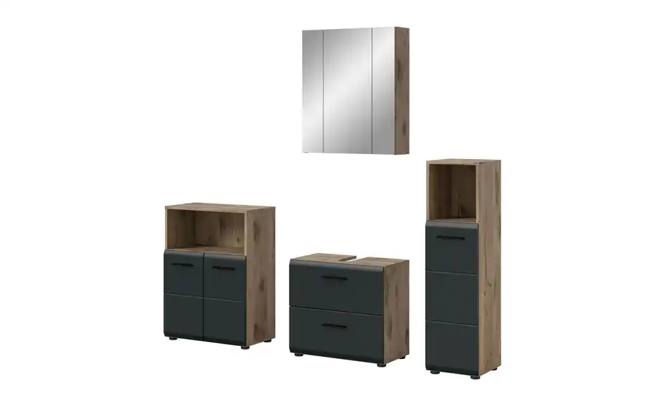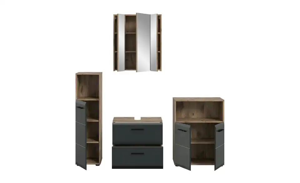- Bestehend aus1x Standschrank, 1x WBU, 1x Spiegelschrank, 1x Standschrank breit