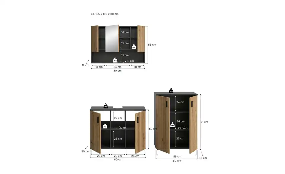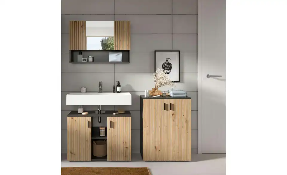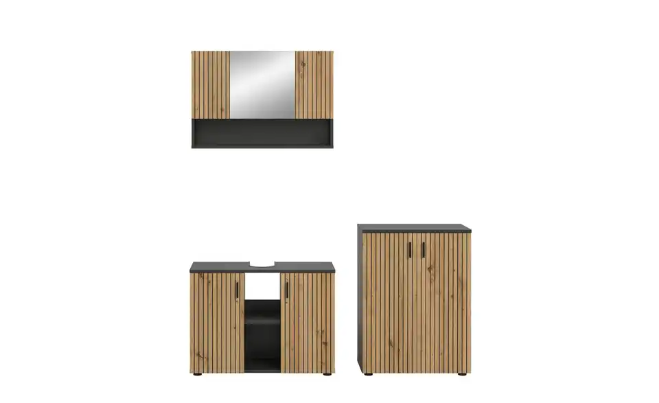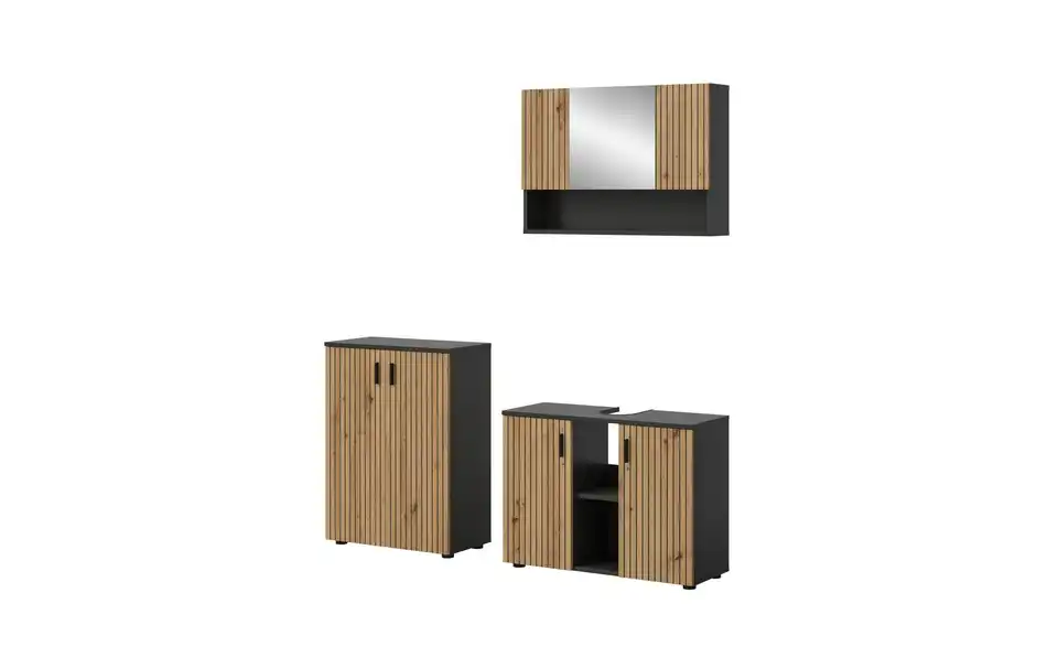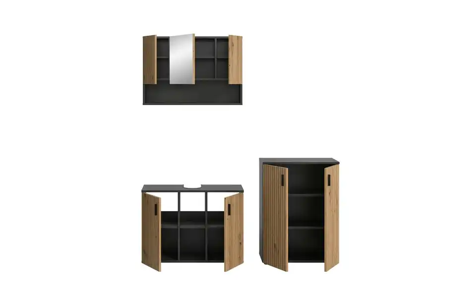- Bestehend aus1x Waschbeckenunterschrank, 1x Spiegelschrank, 1x Badschrank