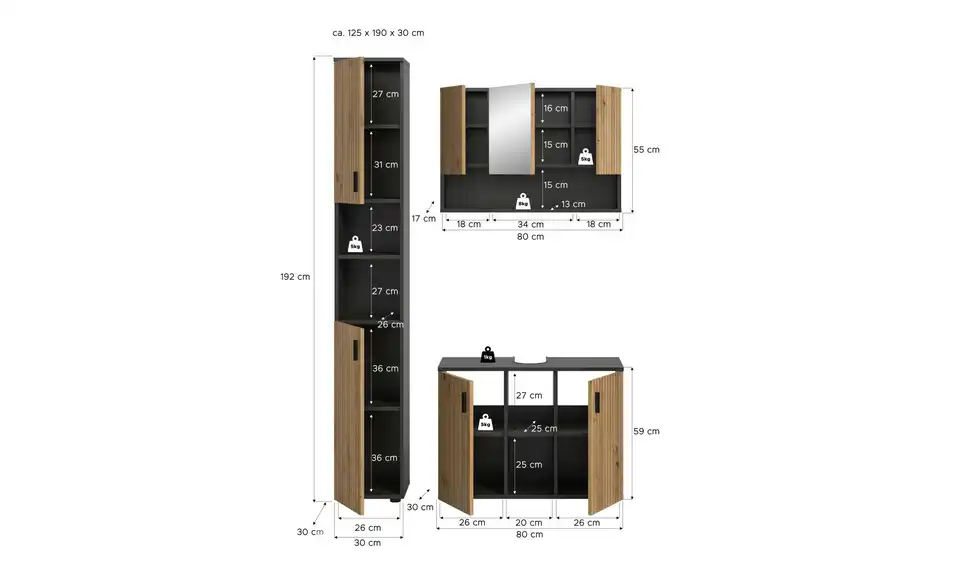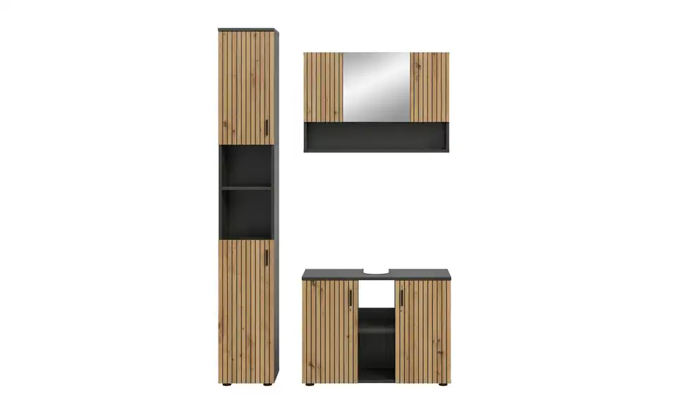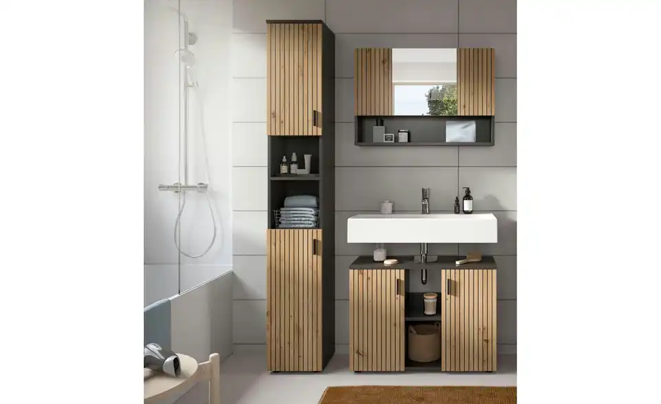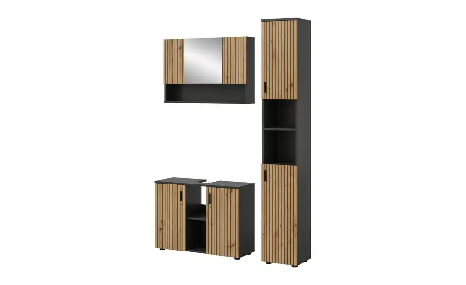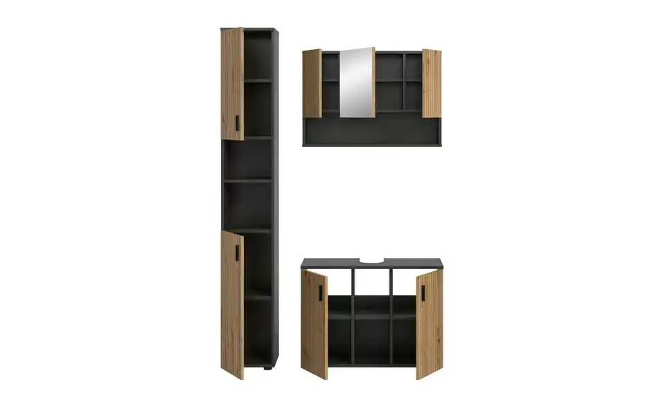 - Bestehend aus1x Badschrank, 1x Waschbeckenunterschrank, 1x Spiegelschrank