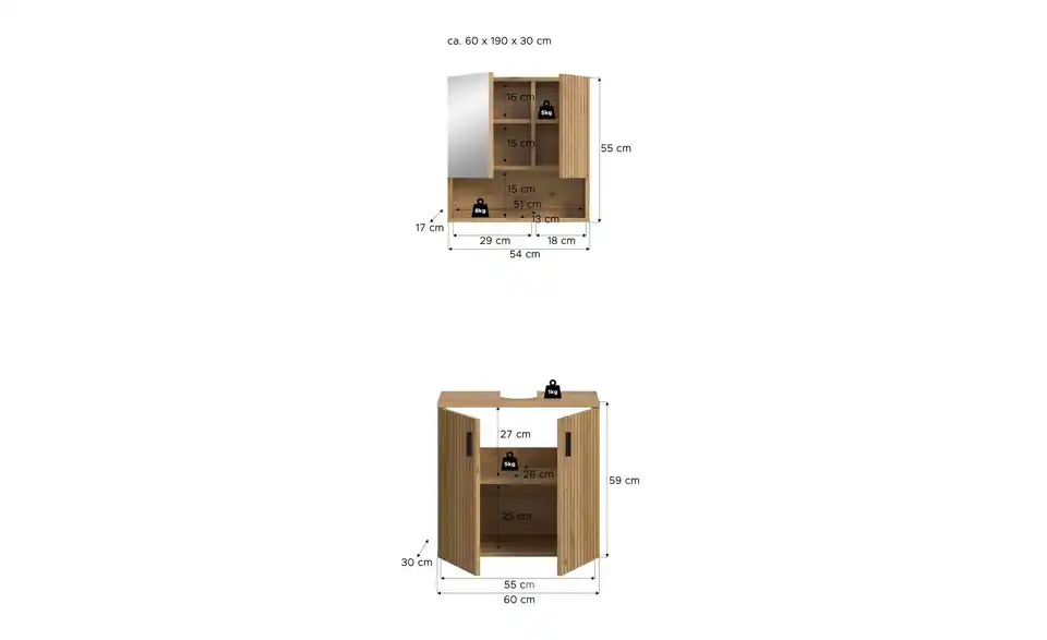- Bestehend aus1x Waschbeckenunterschrank, 1x Spiegelschrank