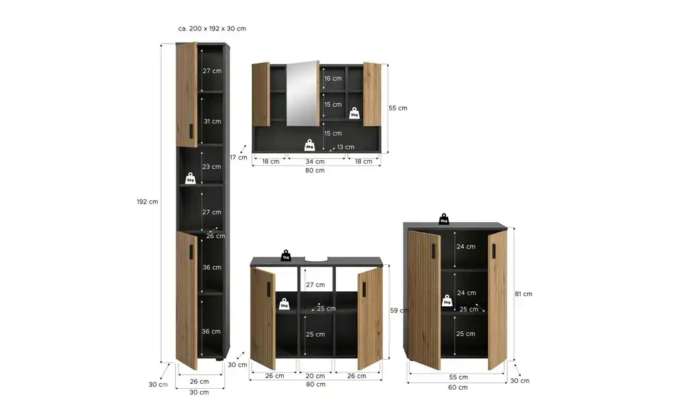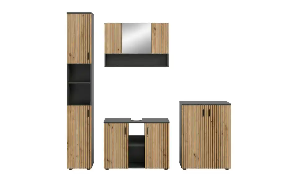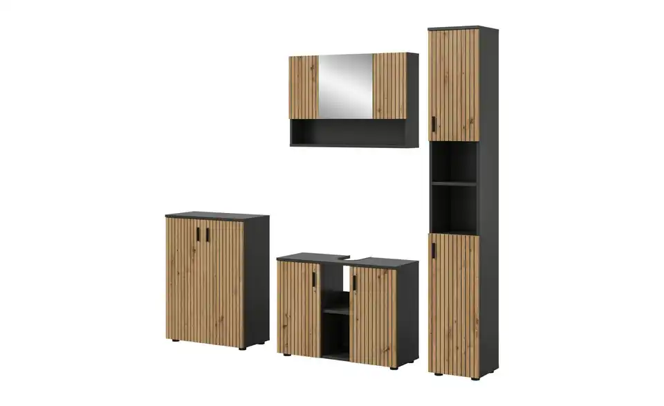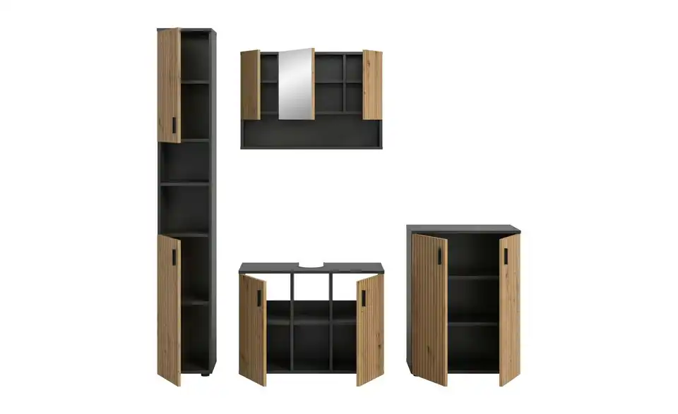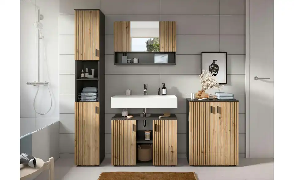 - Bestehend aus1x Badschrank, 1x Waschbeckenunterschrank, 1x Spiegelschrank, 1x Badschrank